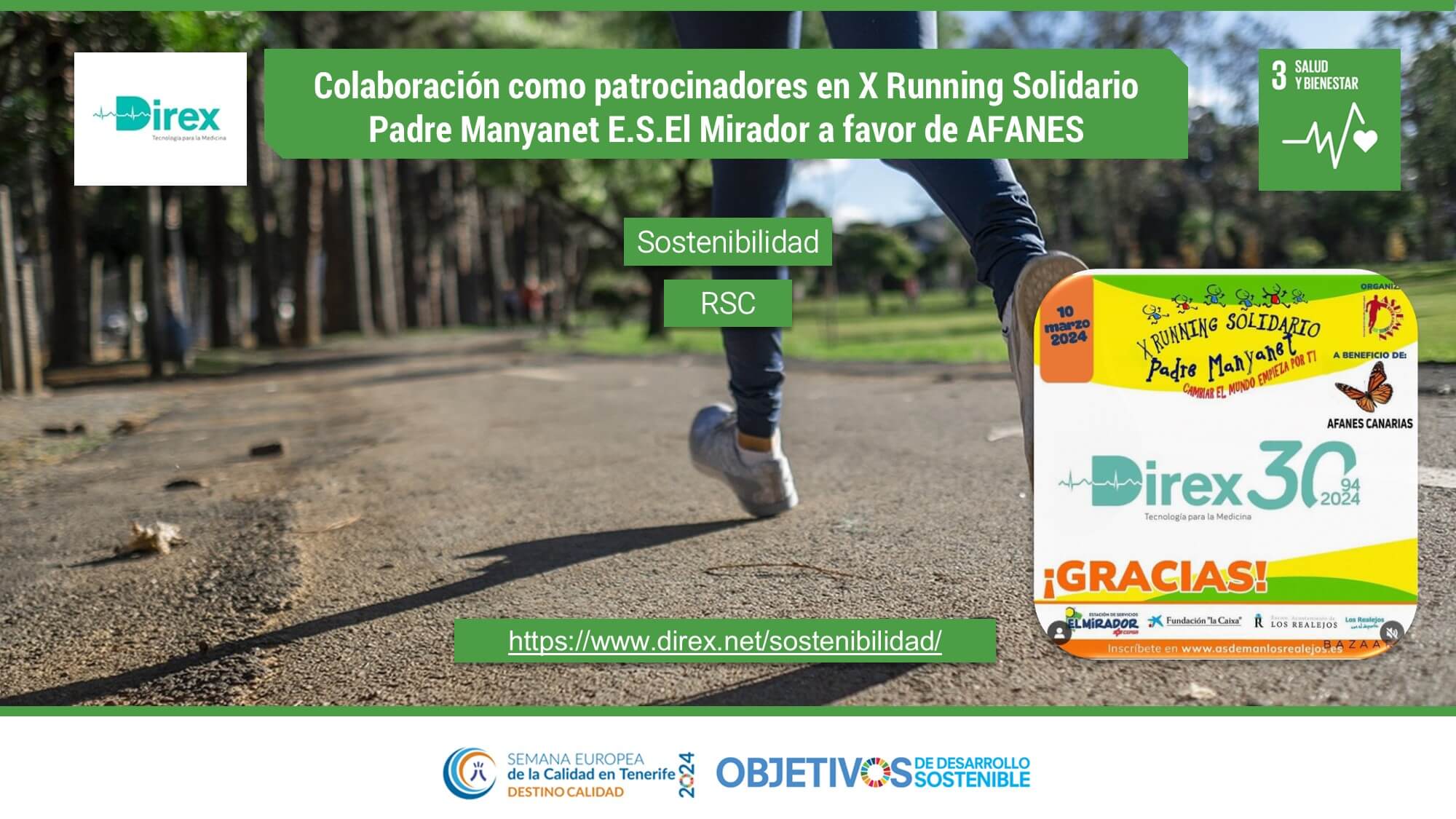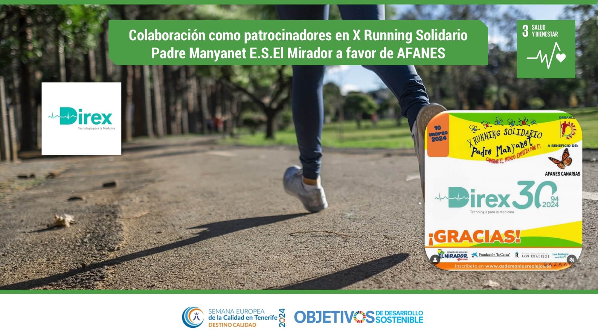 Colaboración como patrocinadores en X Running Solidario Padre Manyanet a favor de AFANES. ODS: 3. Direx S.L.