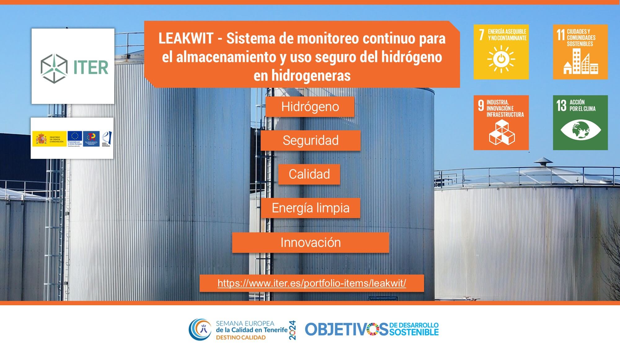 Semana Europea de la Calidad en Tenerife 2024›Event›LEAKWIT – Sistema de monitoreo continuo para el almacenamiento y uso seguro del hidrógeno en hidrogeneras. ODS: 7, 9, 11, 13. Instituto Tecnológico y de Energías Renovables (ITER)