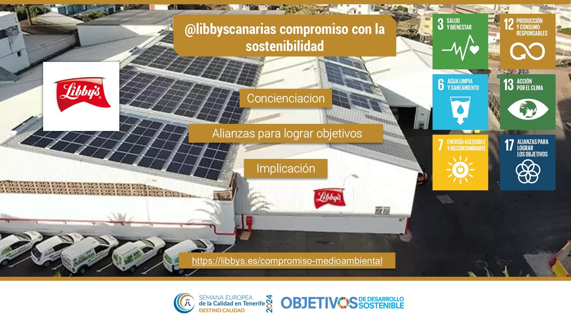@libbyscanarias compromiso con la sostenibilidad. ODS: 3, 6, 7, 12, 13, 17. EIASA (Zumos y Salsas Libby’s)